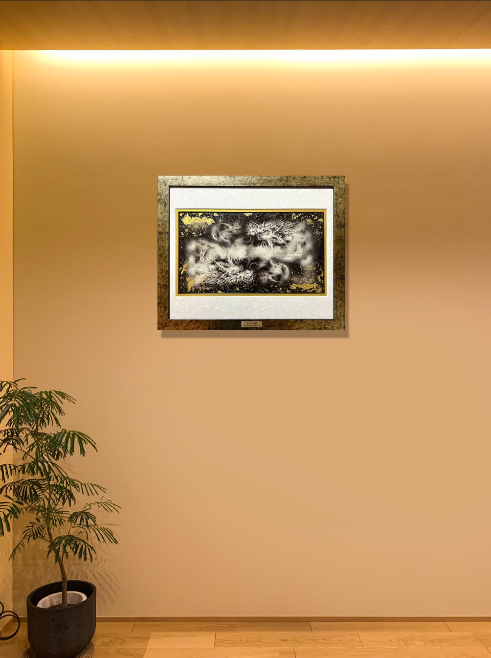 この作品は、龍神の力強いエネルギーが感じられると人気の一枚。壁掛けするだけで、空間に存在感を与え、パワフルな気持ちを醸し出します。日々の生活にちょっとしたスパイスを加えたい方におすすめです。