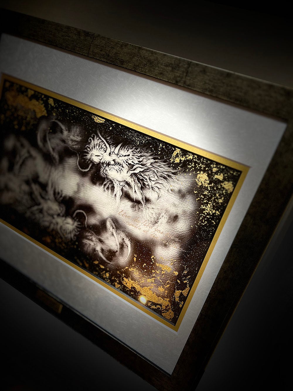 ★双龍:ファブリックレザーアート・本金箔ミクスドメディア