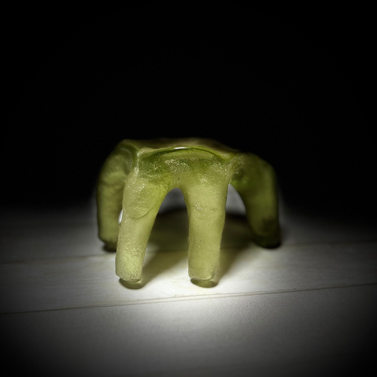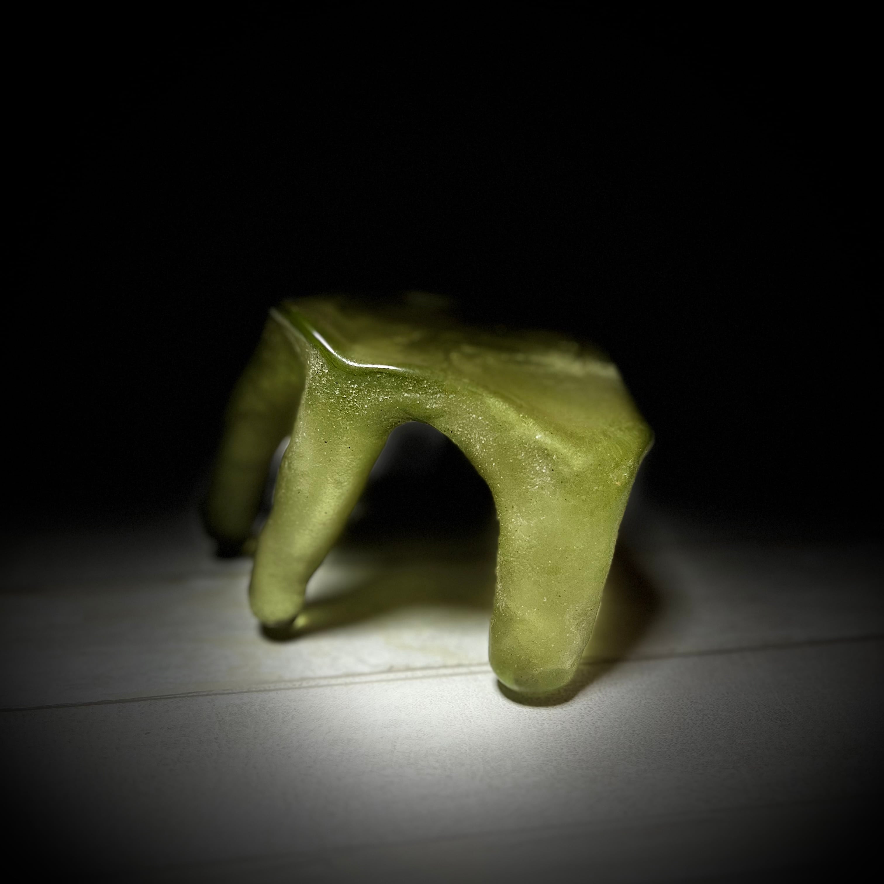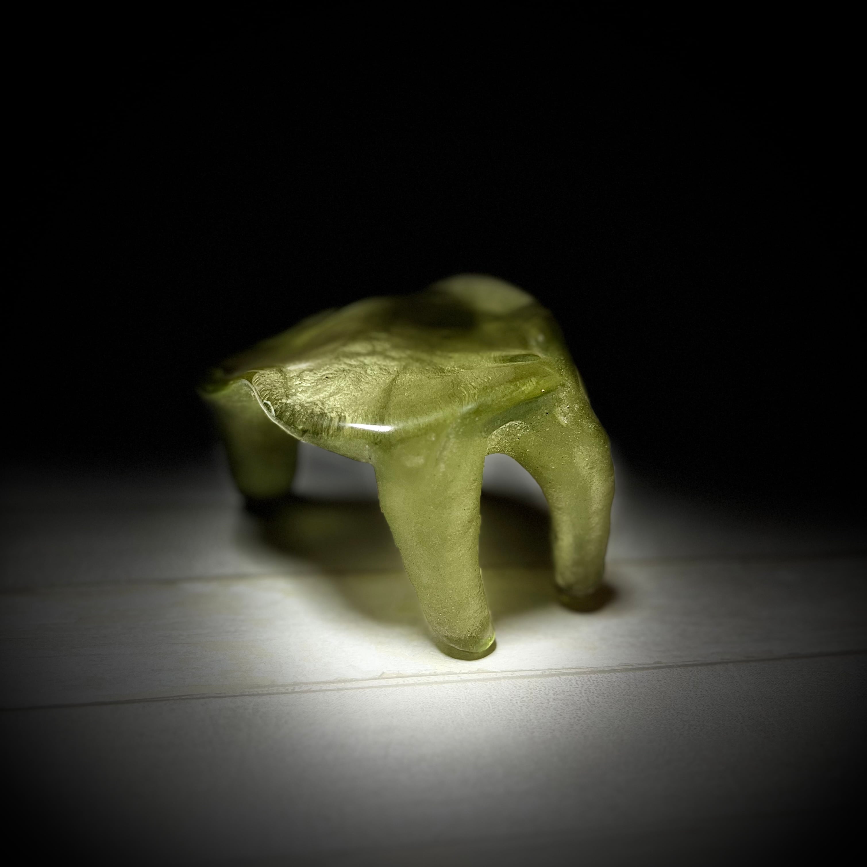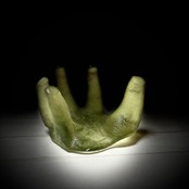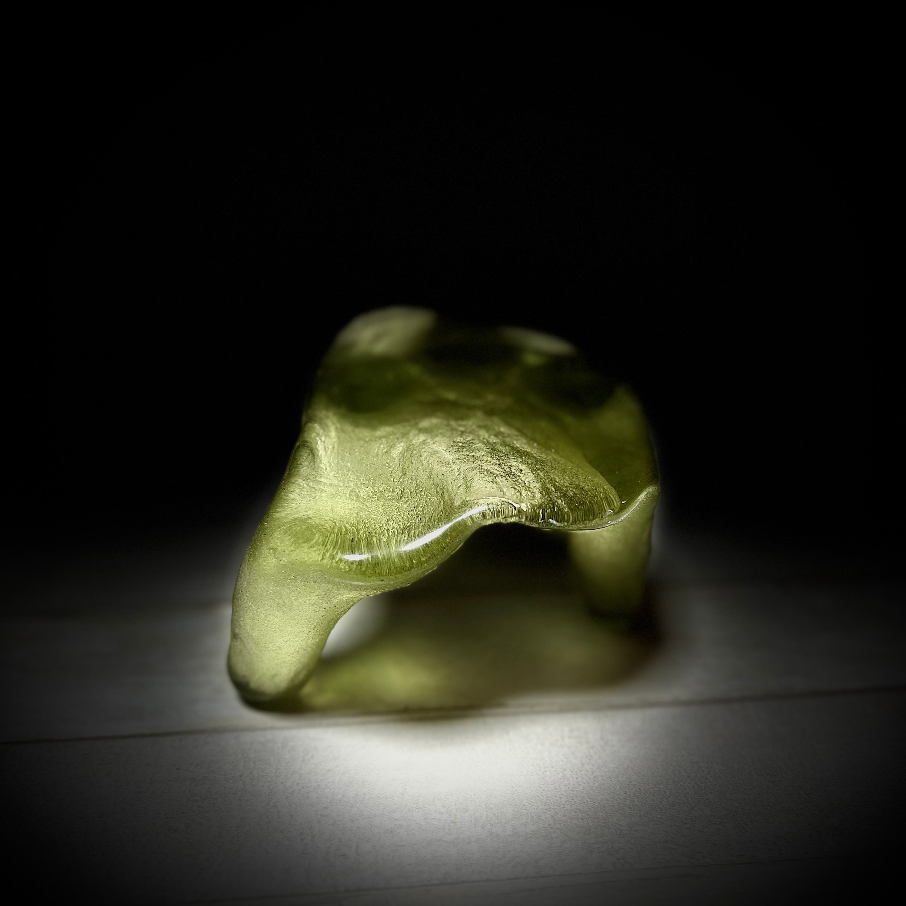 ・新島ガラス特有のオリーブグリーンの持つ色彩の美しさと透明感とが融合し、手形のディテールが心に響きます。このアート作品は、ただの装飾品ではなく、持つ人にインスピレーションを与える特別な存在です。 右手型取りのデザインは、数々の作品を生み出した手から発せられるエネルギーを表現しています。