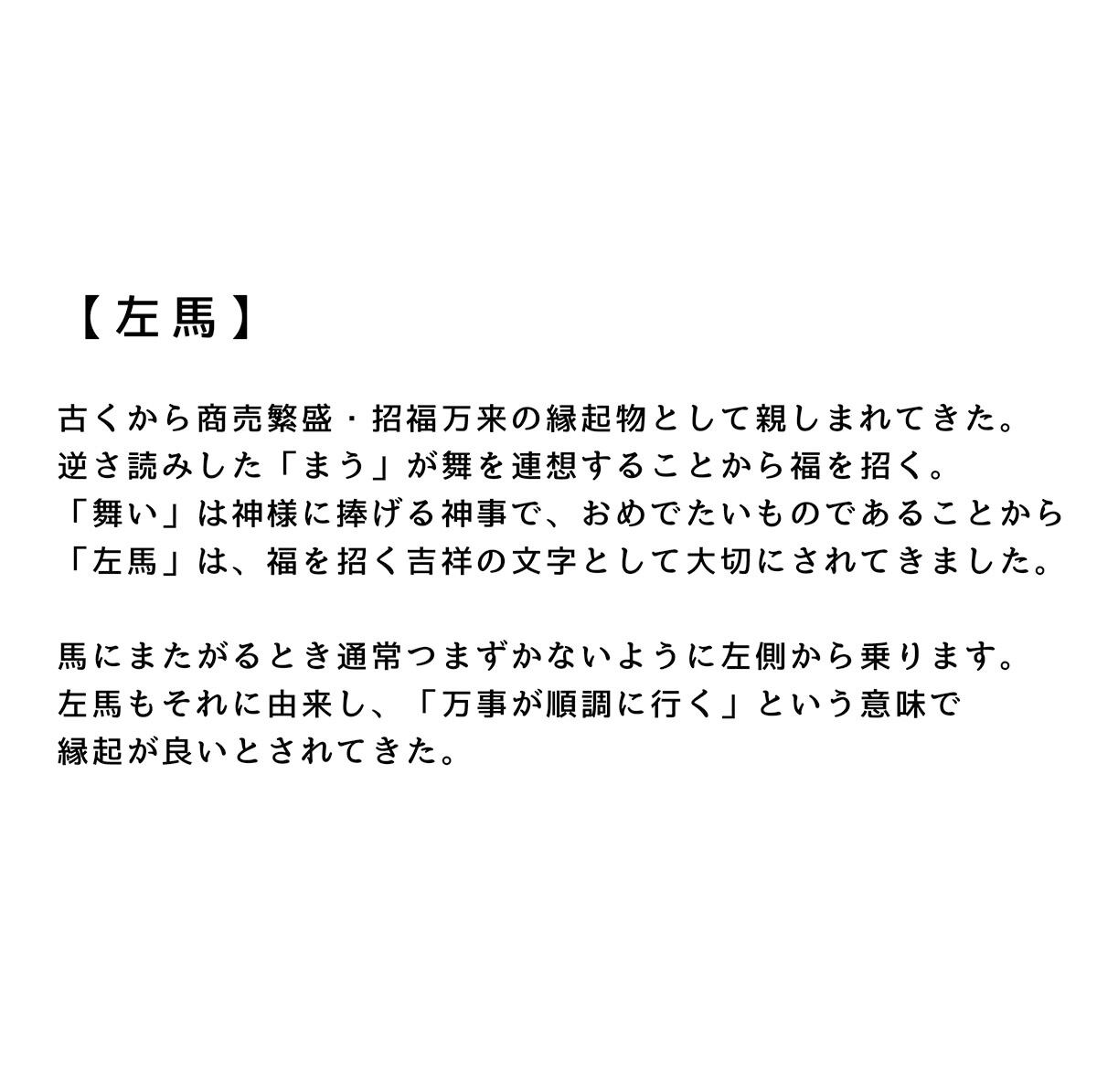 「左馬」は、福を招く吉祥の文字として大切にされてきました。
